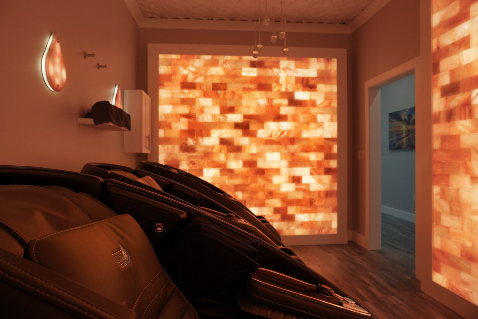Unwind in our soothing relaxation lounge, surrounded by Himilayan salt walls, designed for your comfort and peace. Enjoy complimentary wellness water and aromatherapy hot towels.
